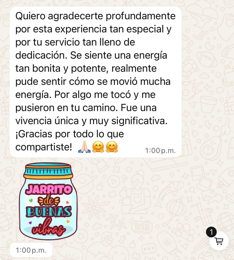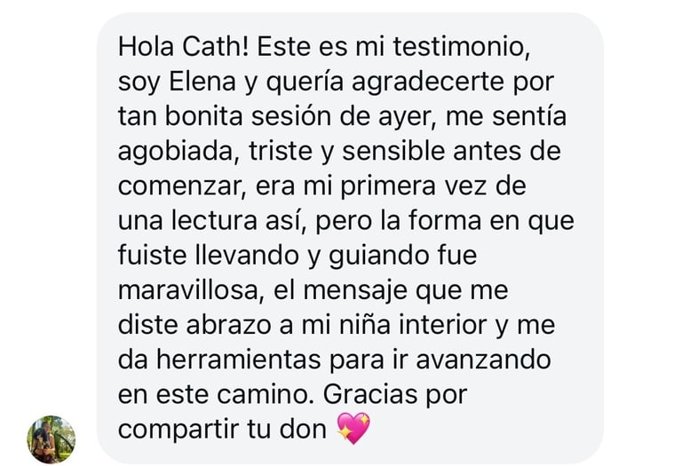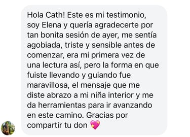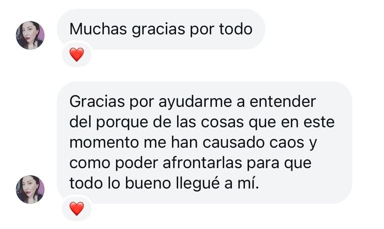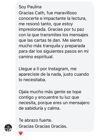 Iniciamos abriendo espacio para tu intención, donde me compartes qué te gustaría trabajar. Pasamos a la tirada especial, donde recibes los mensajitos de tu niña interior y ubicamos el chakra que está bloqueado. Finalmente, realizamos el ejercicio de liberación, donde integramos todos tus mensajes, tus heridas e intención para que puedas liberar.