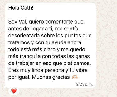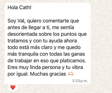 Disclaimer- Política de Reprogramación y Cancelación: Puedes reprogramar tu sesión hasta en tres (2) ocasiones con previo aviso de mínimo 5 horas, notificándole a Cath de tu inasistencia. En caso de inasistencia el día de la sesión (sin previo aviso) tu cita se considerará como tomada, ya que ese espacio fue reservado y preparado especialmente para ti, y no se realizarán reembolsos. En caso de retraso, tienes hasta 10 minutos para ingresar desde la hora de inicio, aunque estos no serán recuperados al final de la sesión. Pasado ese tiempo, la sesión se considerará cancelada y no habrá reembolso. Esto es por respeto al tiempo de todos y a aquellas personas que están en lista de espera para agendar su lugar. Si en otro momento decides tomar nuevamente la sesión, podrás agendar de nuevo realizando el pago completo vigente al momento de reservar.
