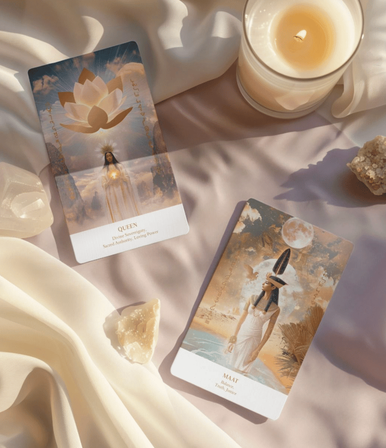 A través del tarot evolutivo y oráculos, con Dios y la Luz en el centro.