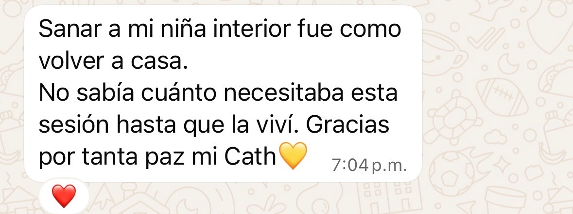 La sesión se enfoca en TU SANACIÓN, pero si deseas tratar, por ejemplo, esa herida sobre cómo te relacionas o estás justo terminando una relación o cerrando un ciclo, 100% te va a ayudar. Recuerda que muchas veces no es que “no merezcas amor” o que “tú seas el problema”. A veces es que tu niña interior aprendió a amar desde la herida: desde el miedo a que te dejen, desde la necesidad de aprobación, desde el “tengo que hacer más para que me elijan”.