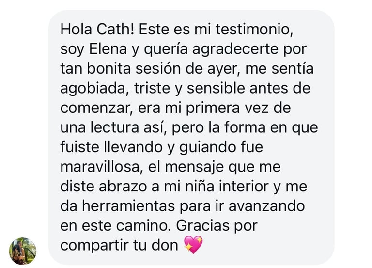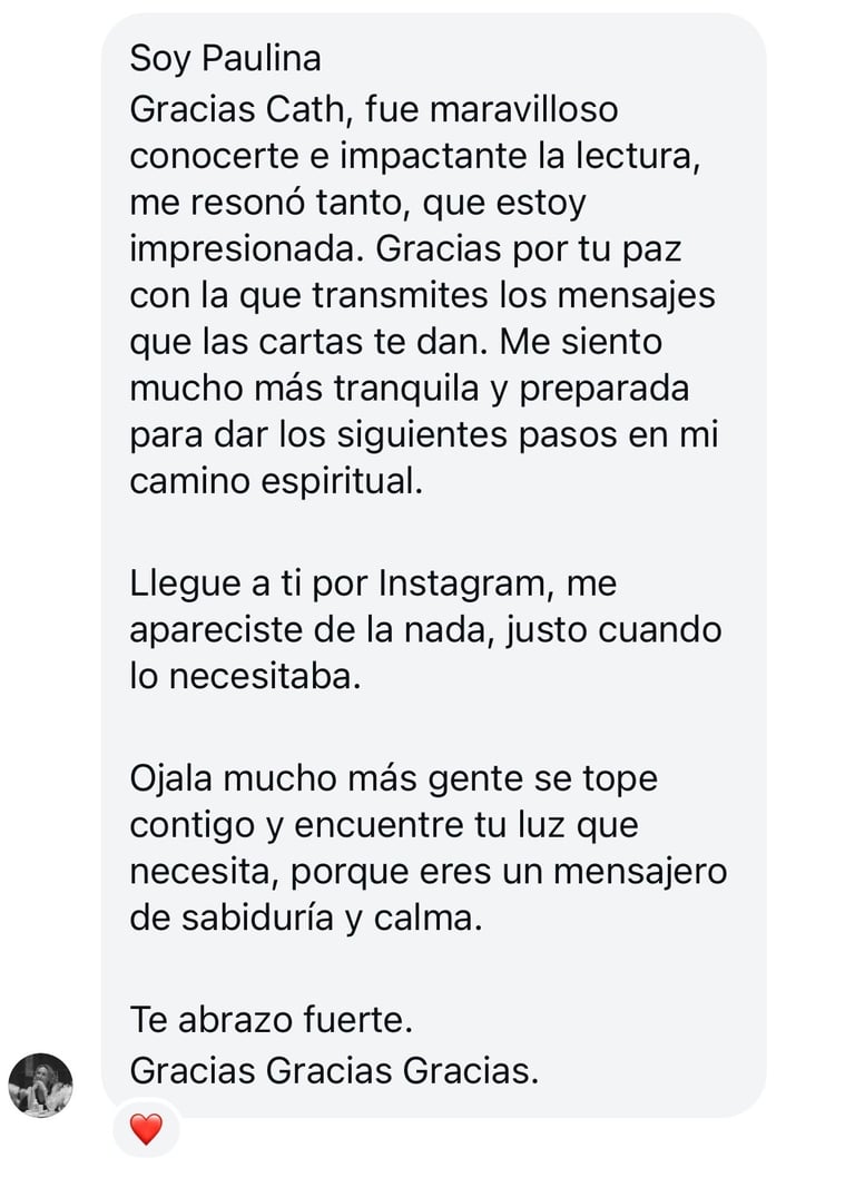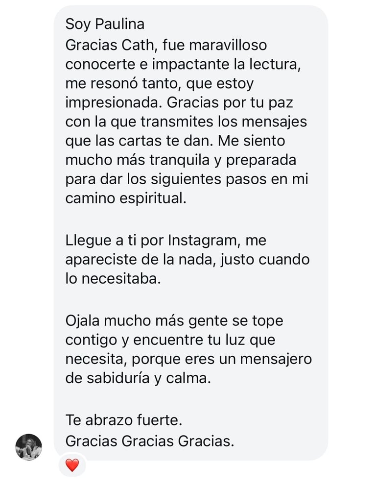 Iniciamos abriendo espacio para tu intención, donde me compartes qué te gustaría trabajar. Pasamos a la tirada especial, donde recibes los mensajitos de tu niña interior y ubicamos el chakra que está bloqueado. Finalmente, realizamos el ejercicio de liberación, donde integramos todos tus mensajes, tus heridas e intención para que puedas liberar.