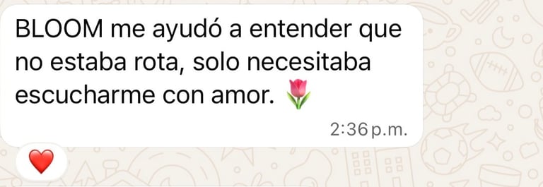 BLOOM puede ayudarte si sientes que estás repitiendo patrones, reaccionando desde la herida o cargando emociones que no sabes cómo sostener. Si sientes que repites patrones, que no tienes tiempo para ti y buscas cultivar una relación amorosa contigo, para liberar, sanar, relacionarte mejor y abrirte a todo lo bueno (el merecimiento, la aceptación, la autenticidad).