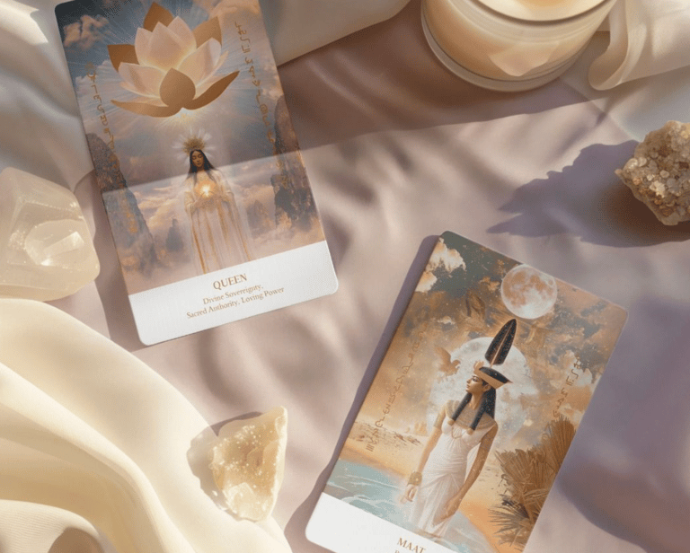 A través del tarot evolutivo y oráculos, con Dios y la Luz en el centro.